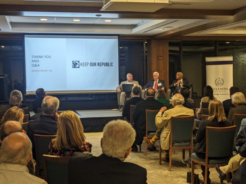 This event featured the Honorable Tom Corbett, 46th Governor of the Commonwealth of Pennsylvania and chair of the Pennsylvania Advisory Council, Keep Our Republic, and the Honorable Thomas I. Vanaskie, former judge for the United States Court of Appeals for the Third Circuit; chief judge of the United States District Court for the Middle District of Pennsylvania and member of the Pennsylvania Advisory Council, Keep Our Republic. Dean Mark C. Alexander moderated a discussion to assess the improvements, gaps and prospects of the new 2022 law. This discussion also explored how the Electoral Count Reform Act (ECRA) would govern specific scenarios of dueling slates of electors, a state that fails to certify its presidential votes and a 12th Amendment contested election process. This event was held in collaboration with Keep Our Republic, which is a non-partisan organization that aims to discover, highlight and help prevent threats to American democracy, strengthen democratic guardrails and educate the public.
