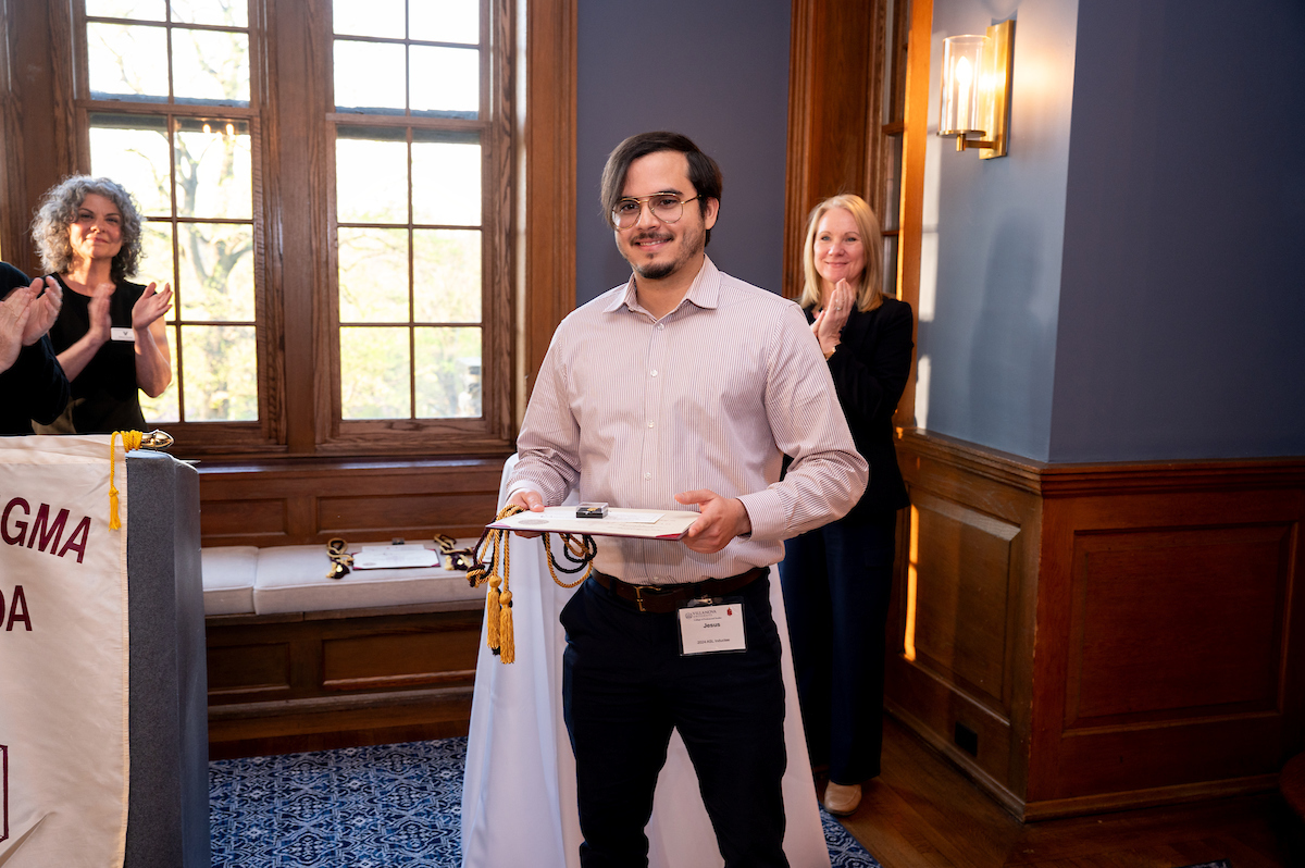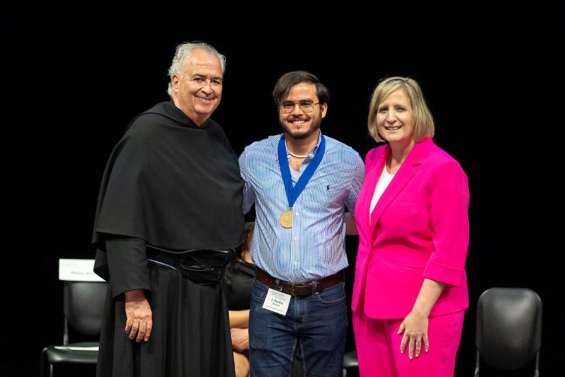 J. Martin Molinos receives an outstanding student medallion for achieving excellence in pursuit of knowledge